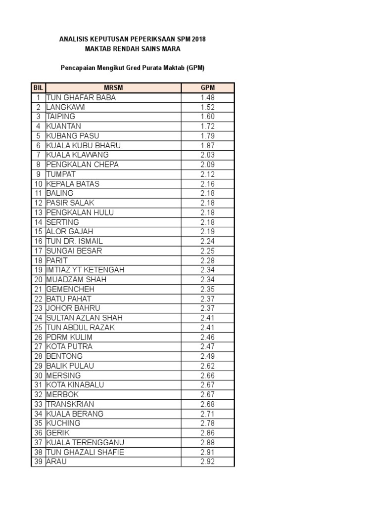 Senarai ranking mrsm terbaik malaysia keputusan spm 2019.