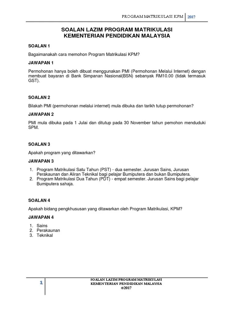 Pendaftaran Online Matrikulasi 2017 - Pendaftaran online stan 2017/2018, informasi di atas secara umum merupakan informasi pendaftaran stan 2017, lokasi tes stan persyaratan pendaftaran usm pkn stan.. Program matrikulasi kementerian pendidikan malaysia menyediakan tiga (3) jurusan pengajian iaitu sains, perakaunan, dan teknikal. Pendaftaran bidikmisi 2017 informasi pendaftaran bidikmisi yang bisa kalian gunakan sebagai panduan dalam mendaftar bidikmisi 2017. Perhatian untuk pelajar lepasan spm 2016 yang berjaya ditawarkan ke matrikulasi, anda digalakkan untuk membuat pra pendaftaran secara dalam talian (online). Peserta diharapkan hadir 10 menit sebelum pelaksanaan program matrikulasi Tarikh tutup permohonan matrikulasi kpm sesi pengajian 2017/2018 ialah pada 30 november 2017.